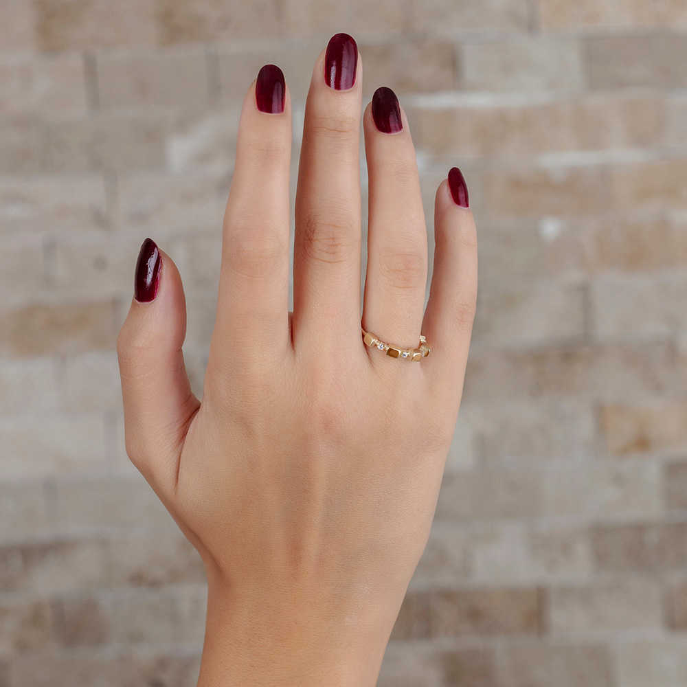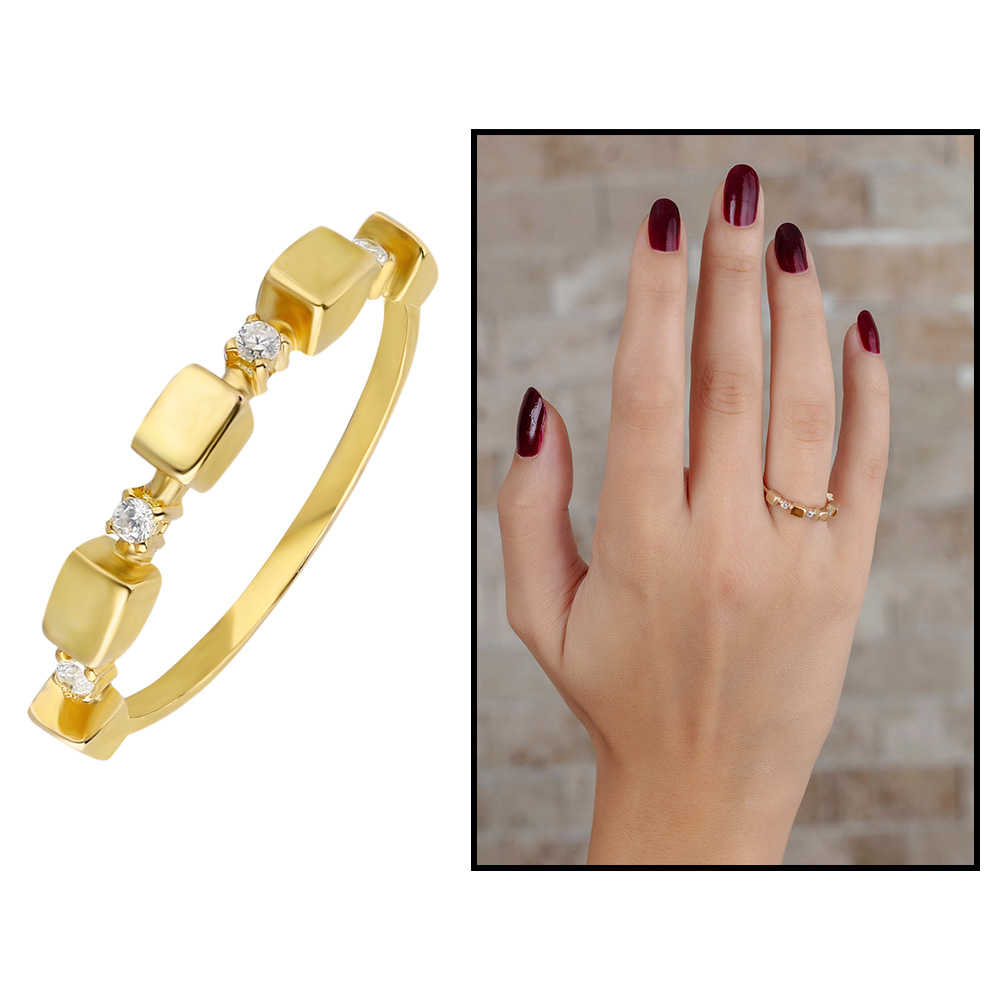 Zirkon Taşlı Sıralı Küp Tasarım Altın Renk 925 Ayar Gümüş Bayan Yüzük