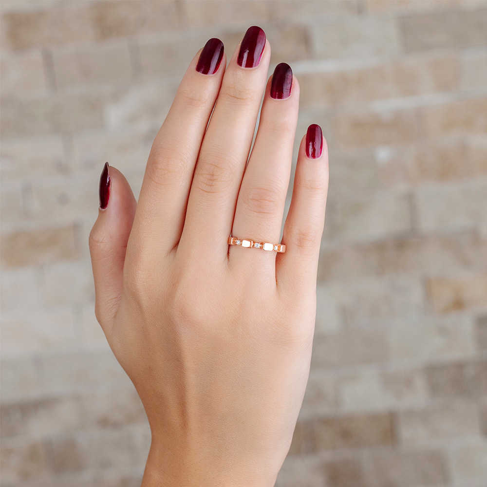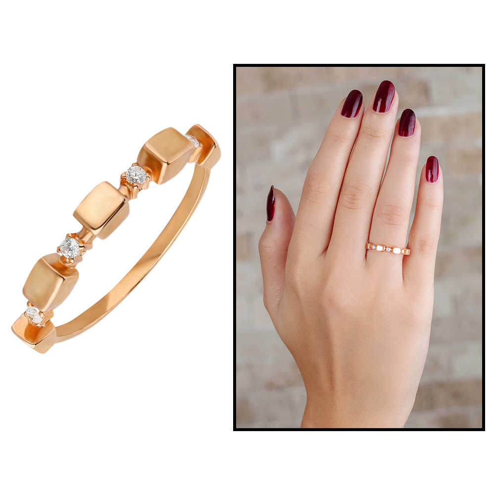Zirkon Taşlı Sıralı Küp Tasarım Rose Renk 925 Ayar Gümüş Bayan Yüzük