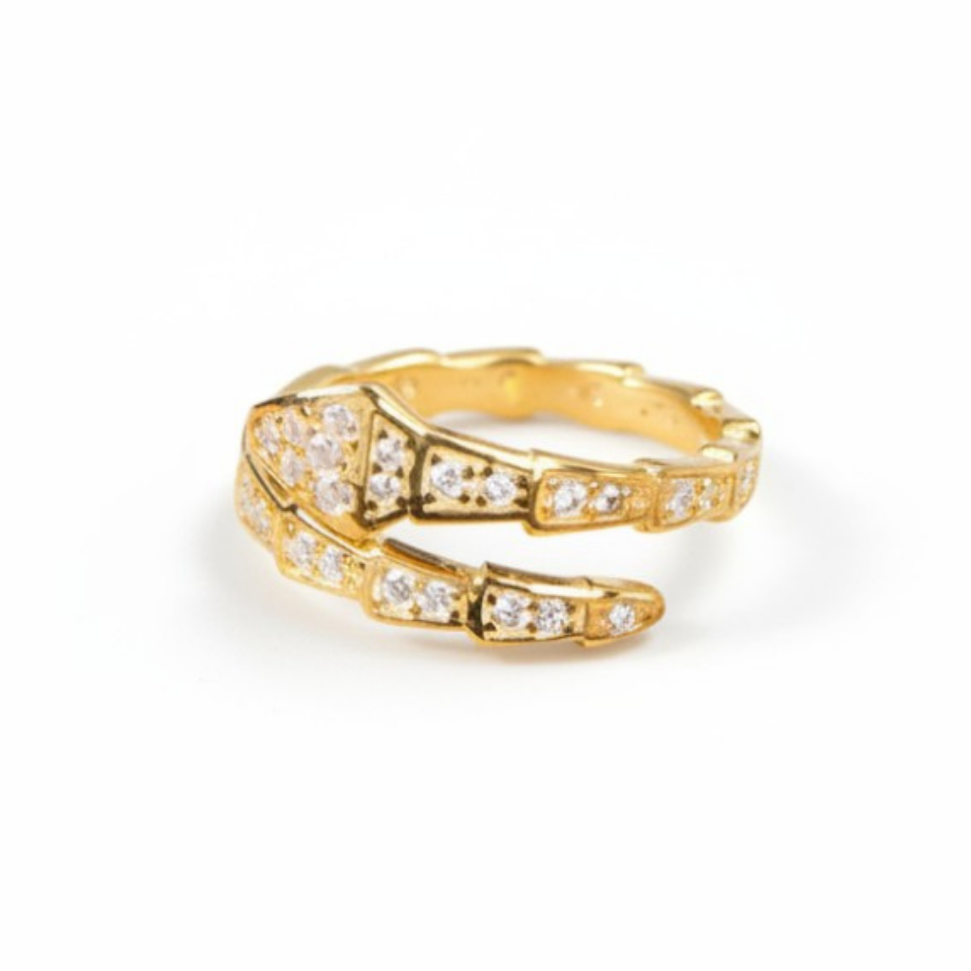 Zirkon Taşlı Snake Tasarım Altın Renk Ayarlanabilir Ölçü 925 Ayar Gümüş Kadın Yüzük
