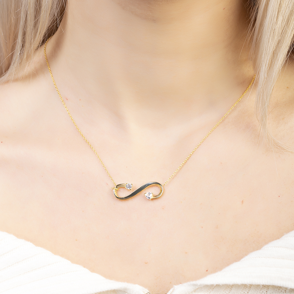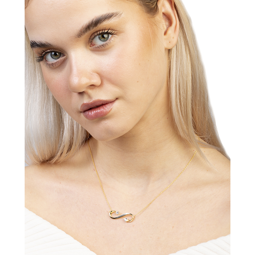 Zirkon Taşlı Sonsuzluk Tasarım Altın Renk 925 Ayar Gümüş Kadın Kolye