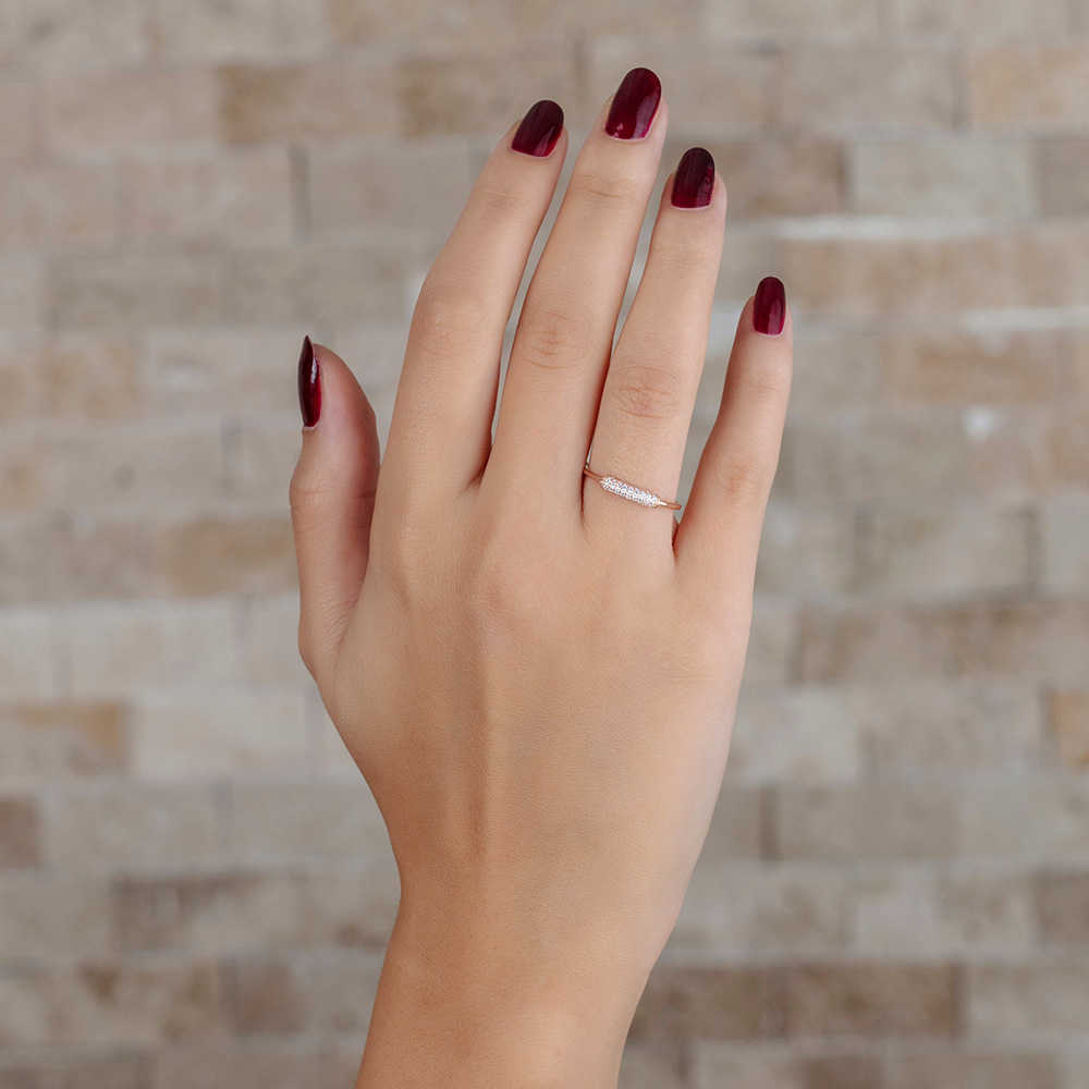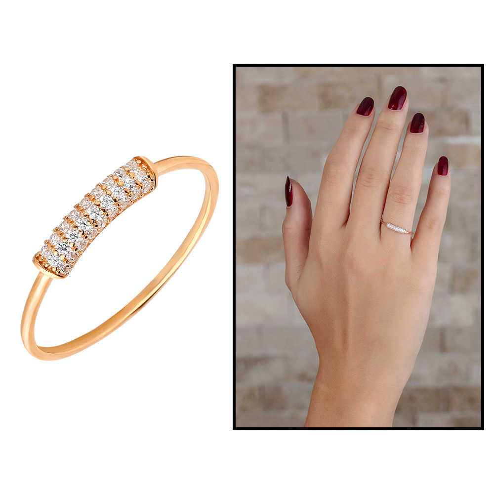 Zirkon Taşlı Tüp Tasarım Rose Renk 925 Ayar Gümüş Bayan Yüzük