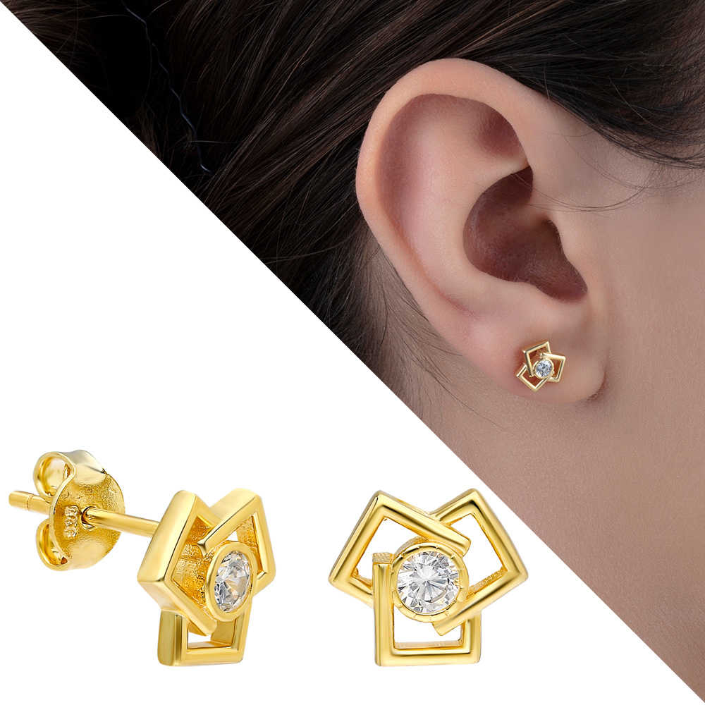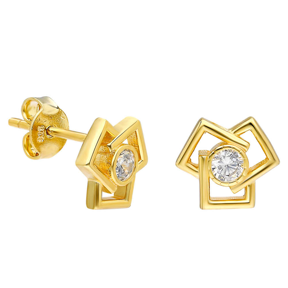 Zirkon Taşlı 3 lü Kare Tasarım Altın Renk 925 Ayar Gümüş Küpe - 1