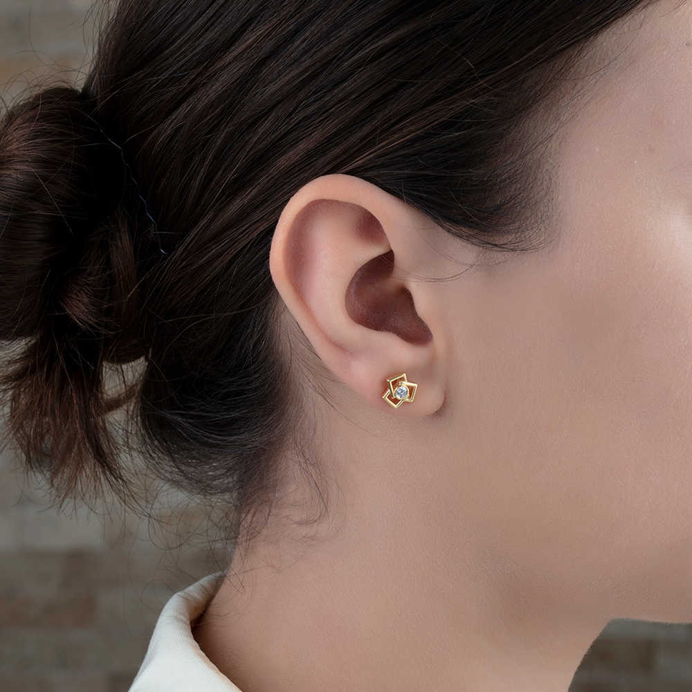 Zirkon Taşlı 3 lü Kare Tasarım Altın Renk 925 Ayar Gümüş Küpe - 5
