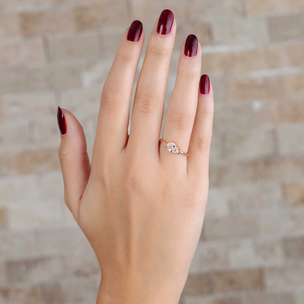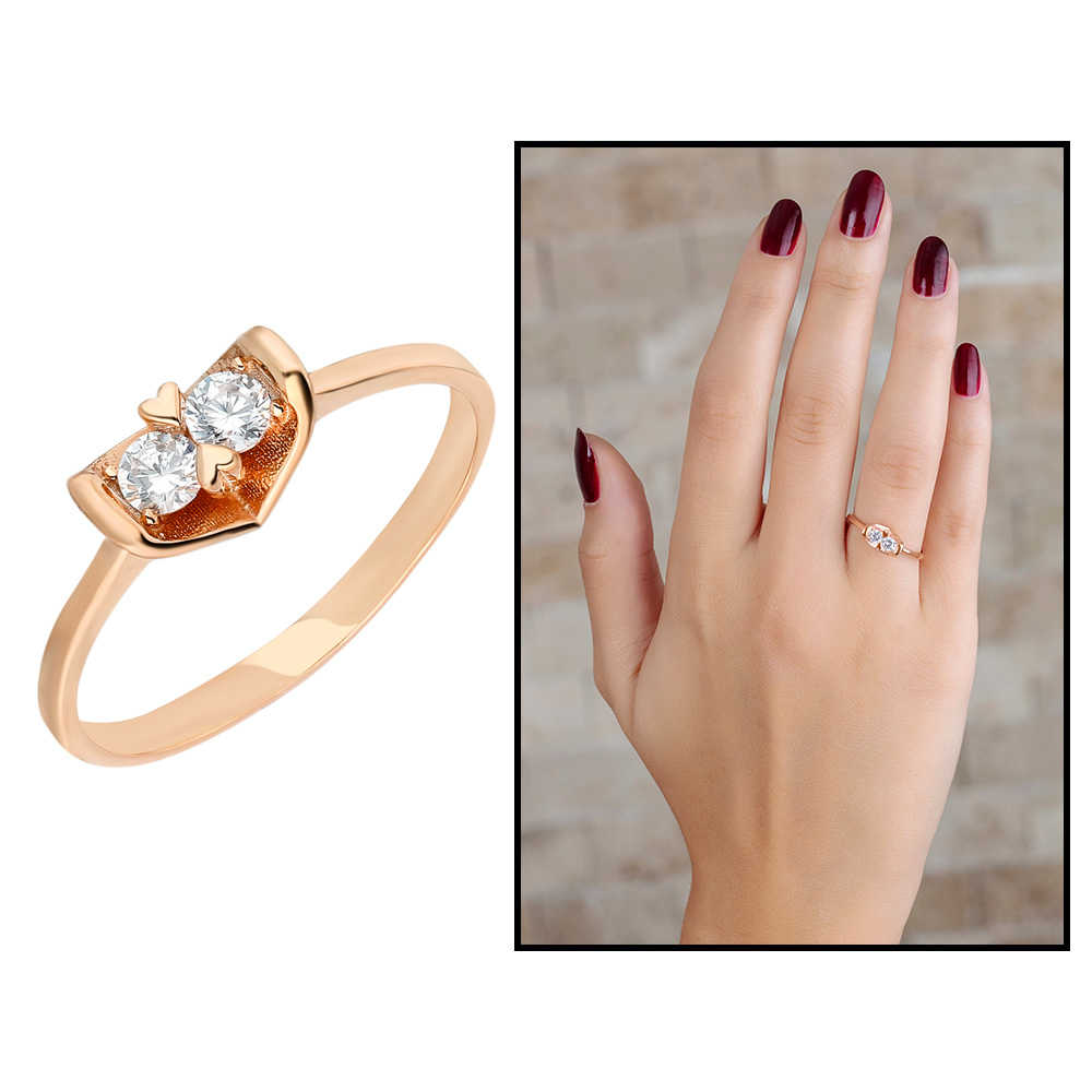 Zirkon Taşlı V Tasarım Rose Renk 925 Ayar Gümüş Bayan Yüzük