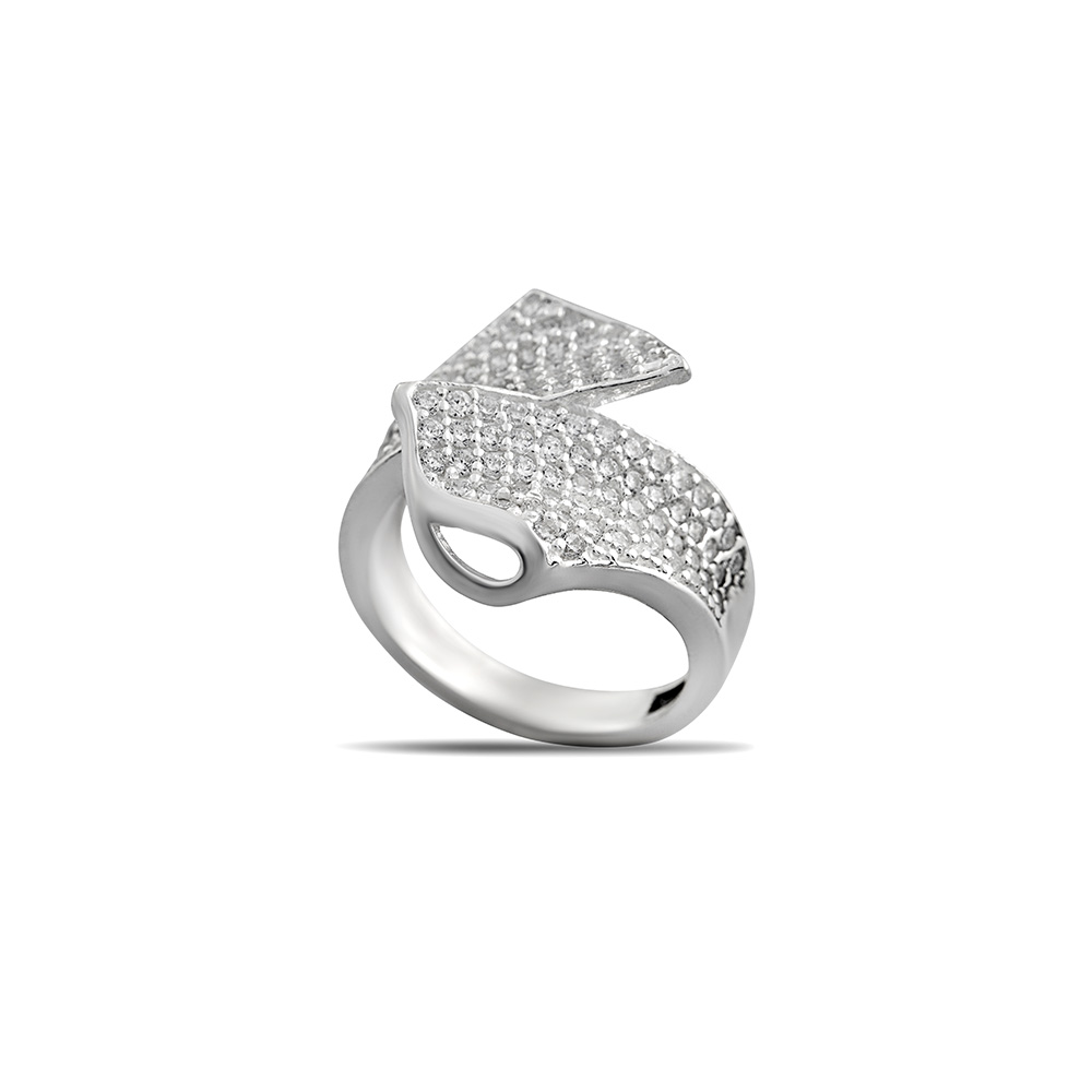 Zirkon Taşlı Yaprak Tasarım Kedigözü Detaylı 925 Ayar Gümüş Kadın Yüzük