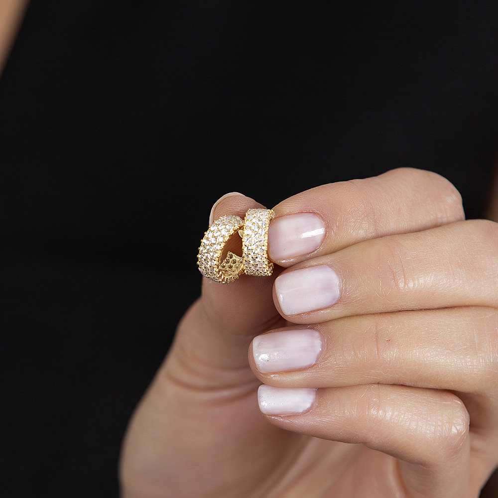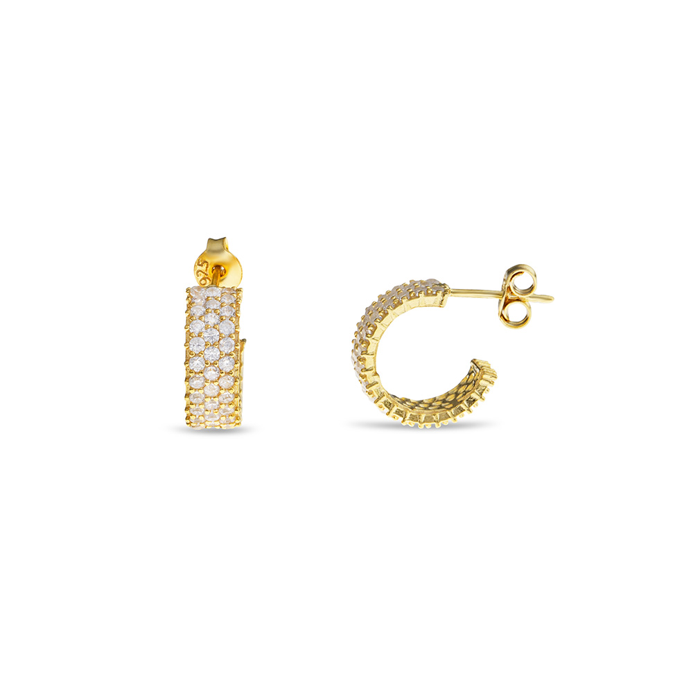 Zirkon Taşlı Yarım Tur Altın Renk 925 Ayar Gümüş Kadın Küpe