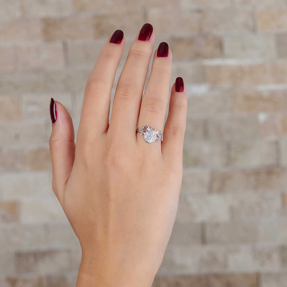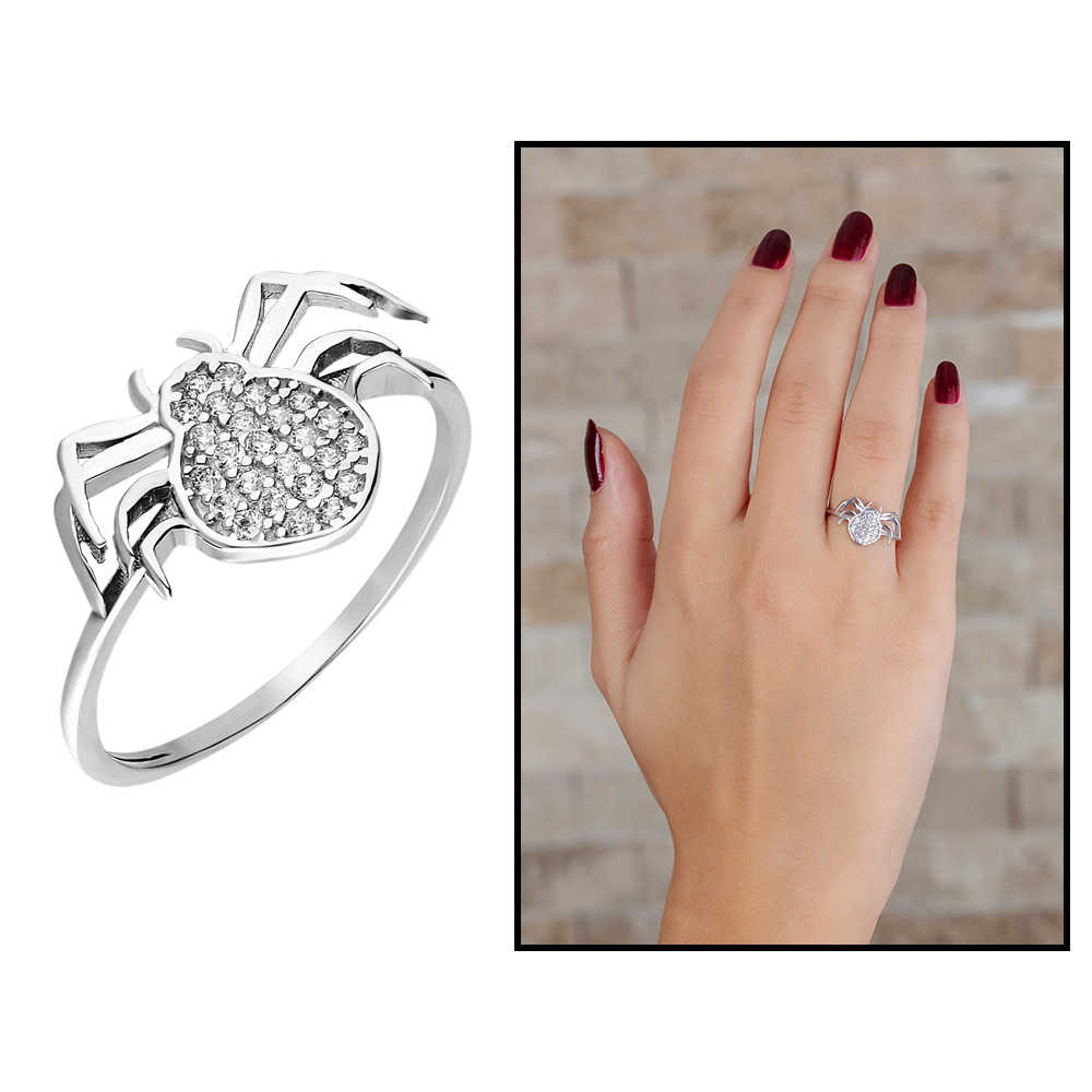 Zirkon Taşlı Spider Tasarım 925 Ayar Gümüş Bayan Yüzük