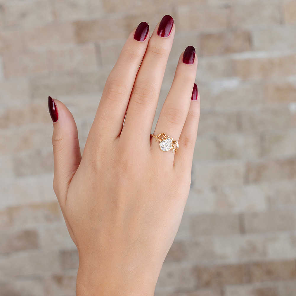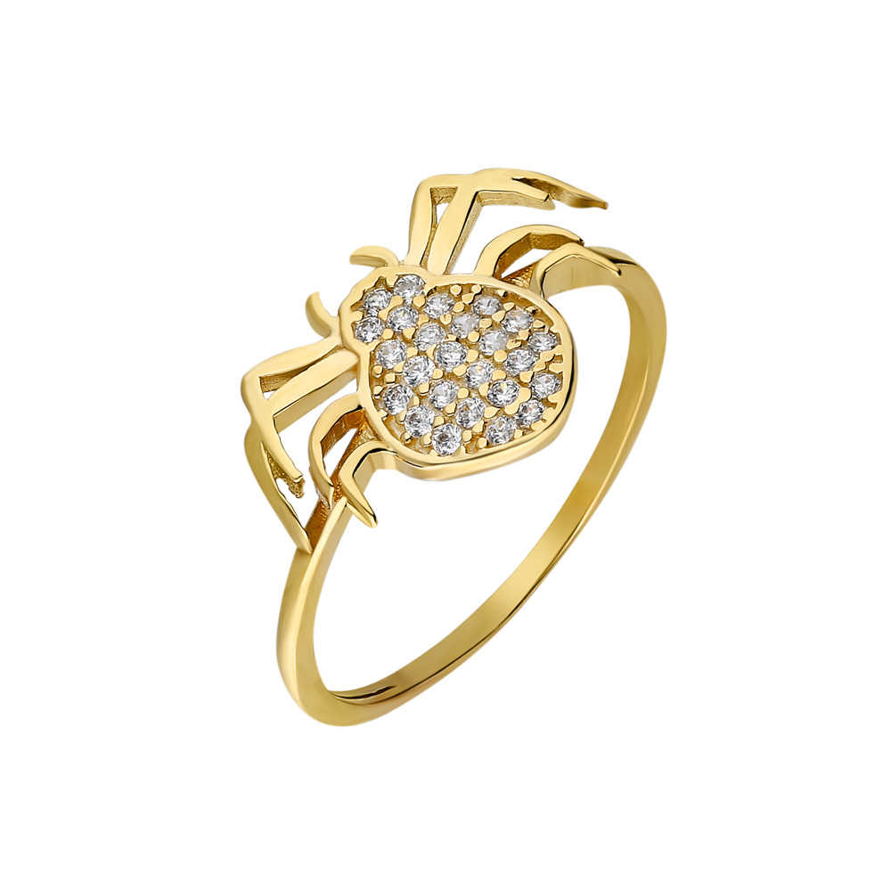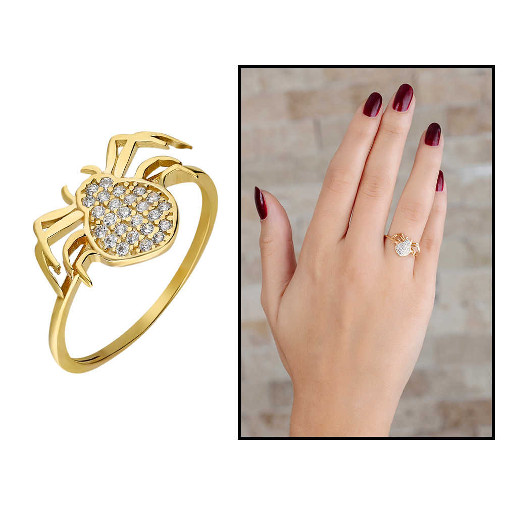 Zirkon Taşlı Spider Tasarım Altın Renk 925 Ayar Gümüş Bayan Yüzük
