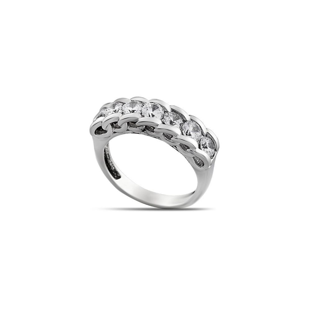 Zirkon Taşlı Zincir Tasarım 925 Ayar Gümüş Kadın Multi Taş Yüzük