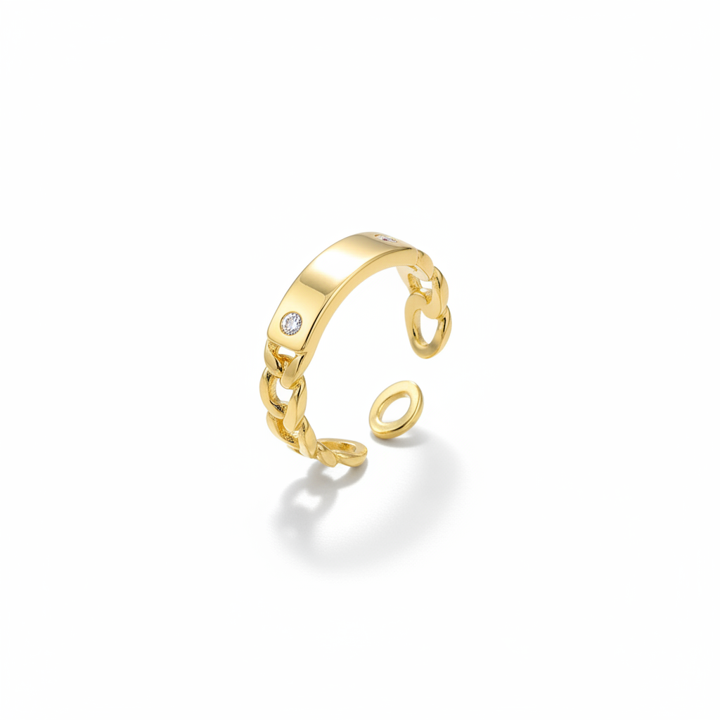 Zirkon Taşlı Zincir Tasarım Altın Renk Ölçü Ayarlı İsme Özel Harf Yazılı 925 Ayar Gümüş Kadın Yüzük