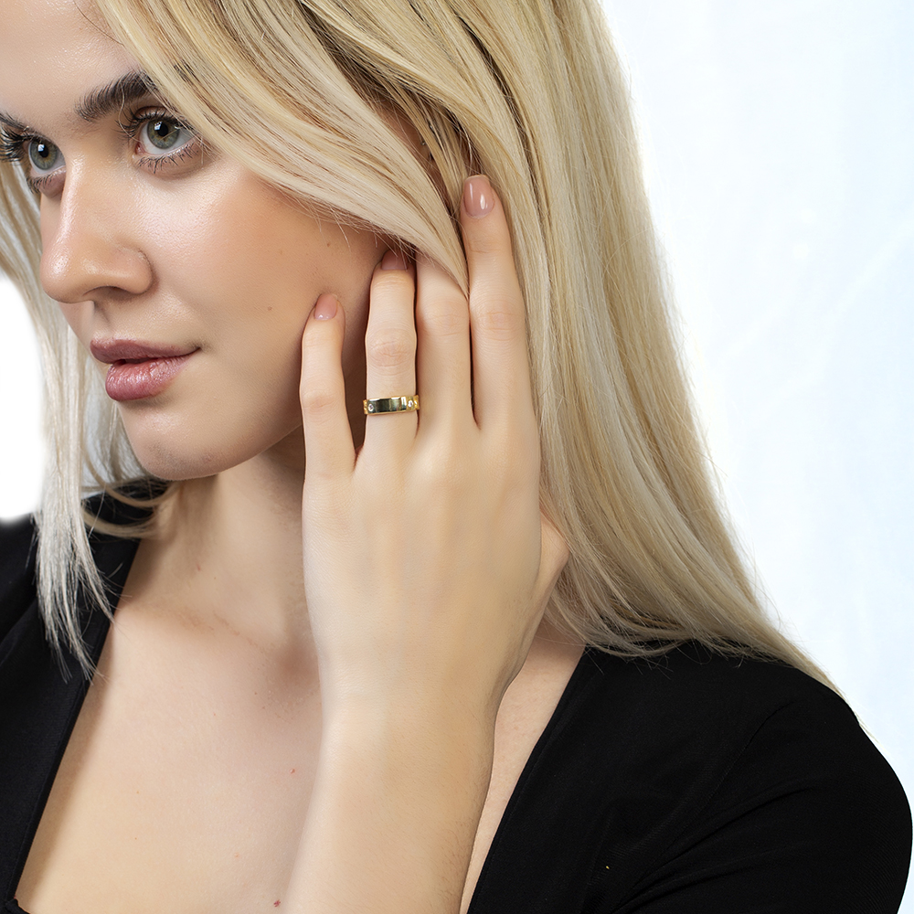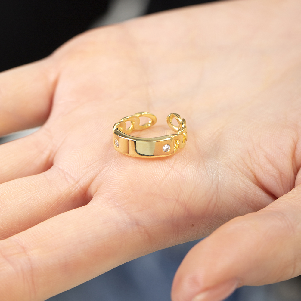 Zirkon Taşlı Zincir Tasarım Altın Renk İsme Özel Harf Yazılı 925 Ayar Gümüş Kadın Yüzük