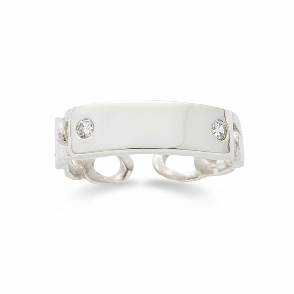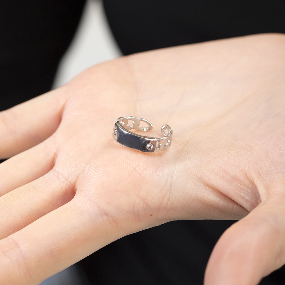 Zirkon Taşlı Zincir Tasarım Gümüş Renk İsme Özel Harf Yazılı 925 Ayar Gümüş Kadın Yüzük