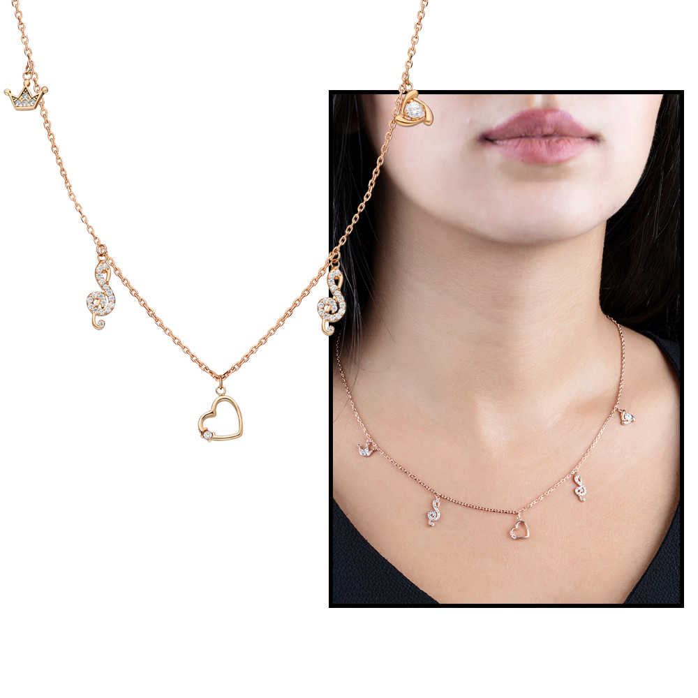 Zirkon Tektaş Kalp Sol Taç Kombinli Rose Renk 925 Ayar Gümüş Şans Kolyesi - 1