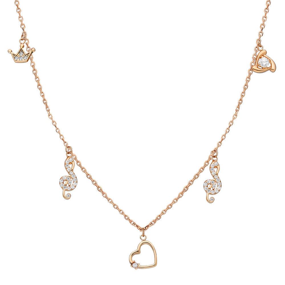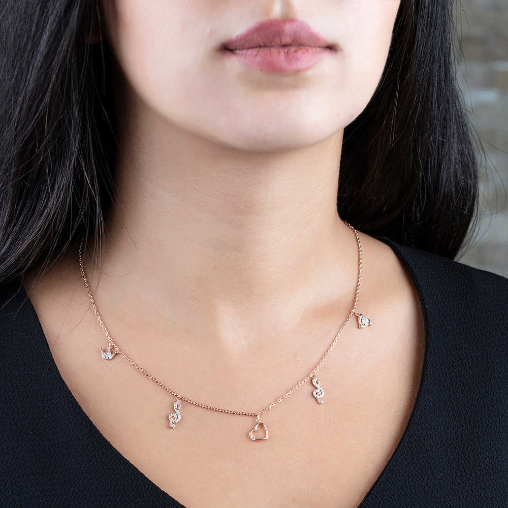 Zirkon Tektaş Kalp Sol Taç Kombinli Rose Renk 925 Ayar Gümüş Şans Kolyesi