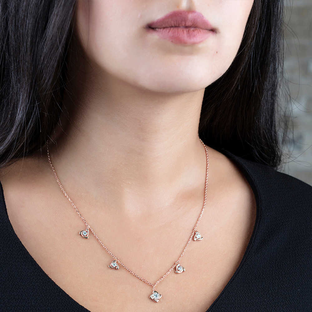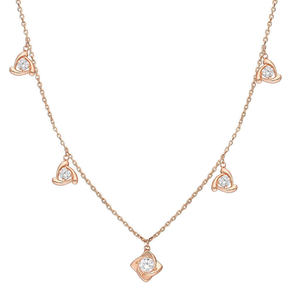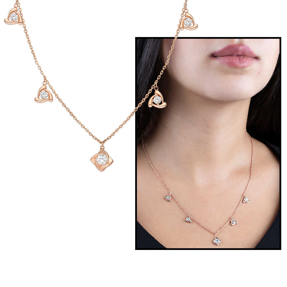 Zirkon Tektaş Rüzgar Gülü Kombinli Rose Renk 925 Ayar Gümüş Şans Kolyesi