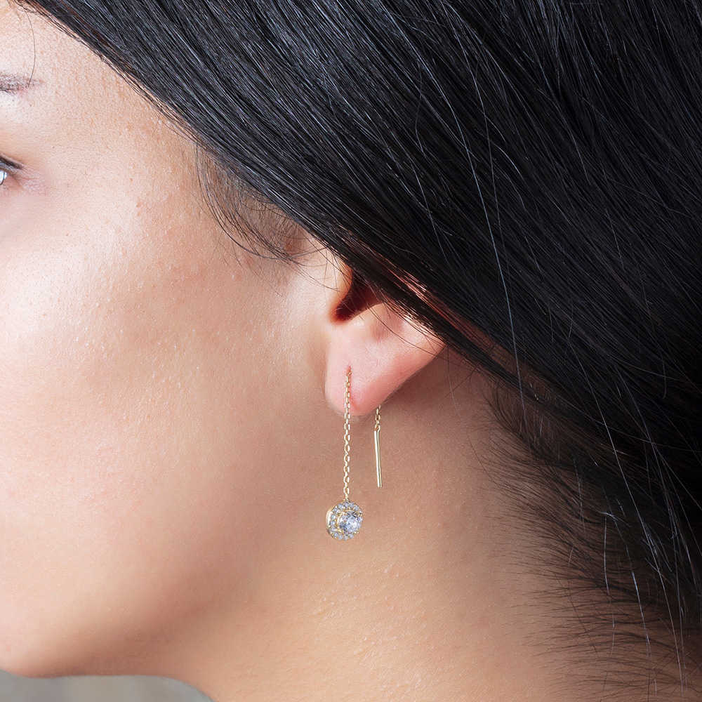 Zirkon Tektaşlı Altın Renk 925 Ayar Gümüş Sallantılı Küpe - 1