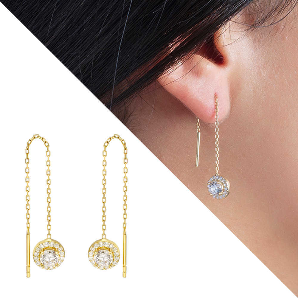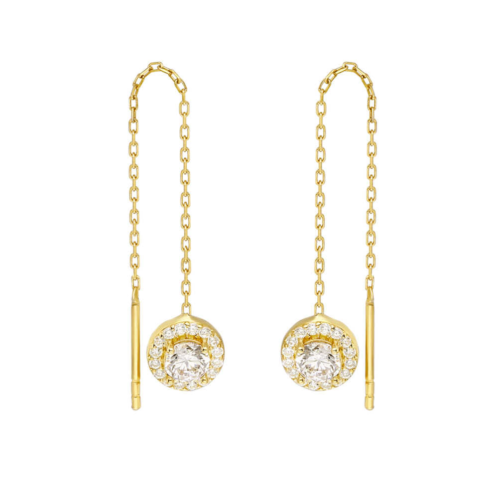 Zirkon Tektaşlı Altın Renk 925 Ayar Gümüş Sallantılı Küpe