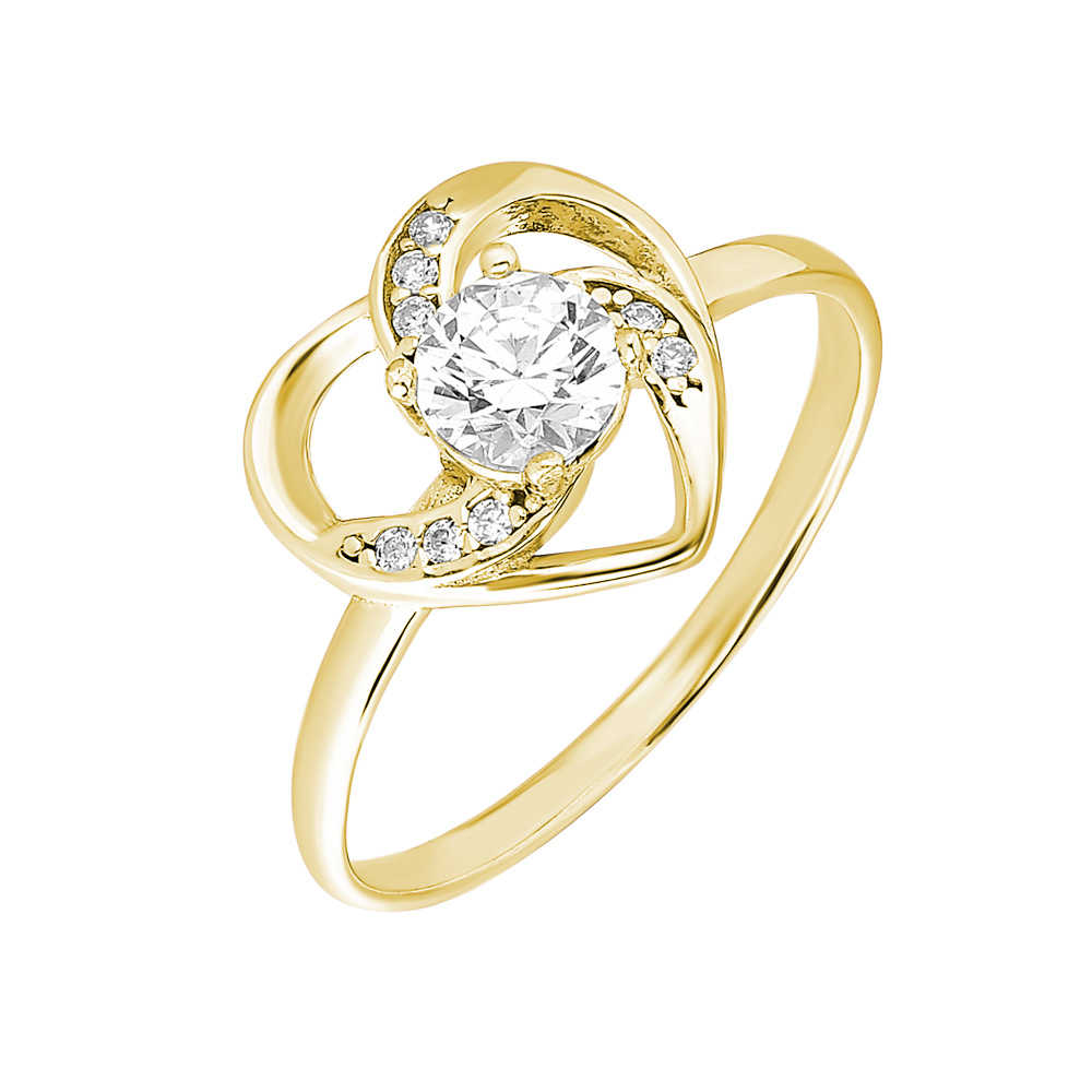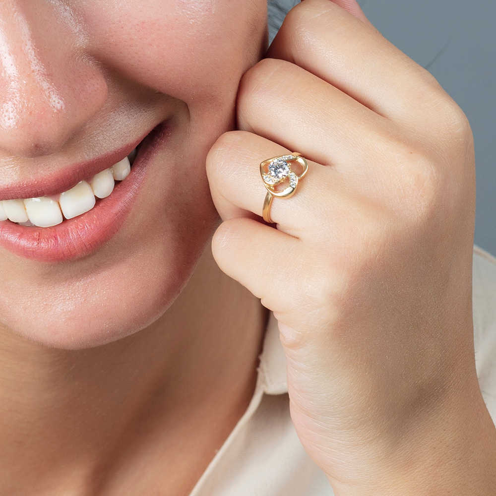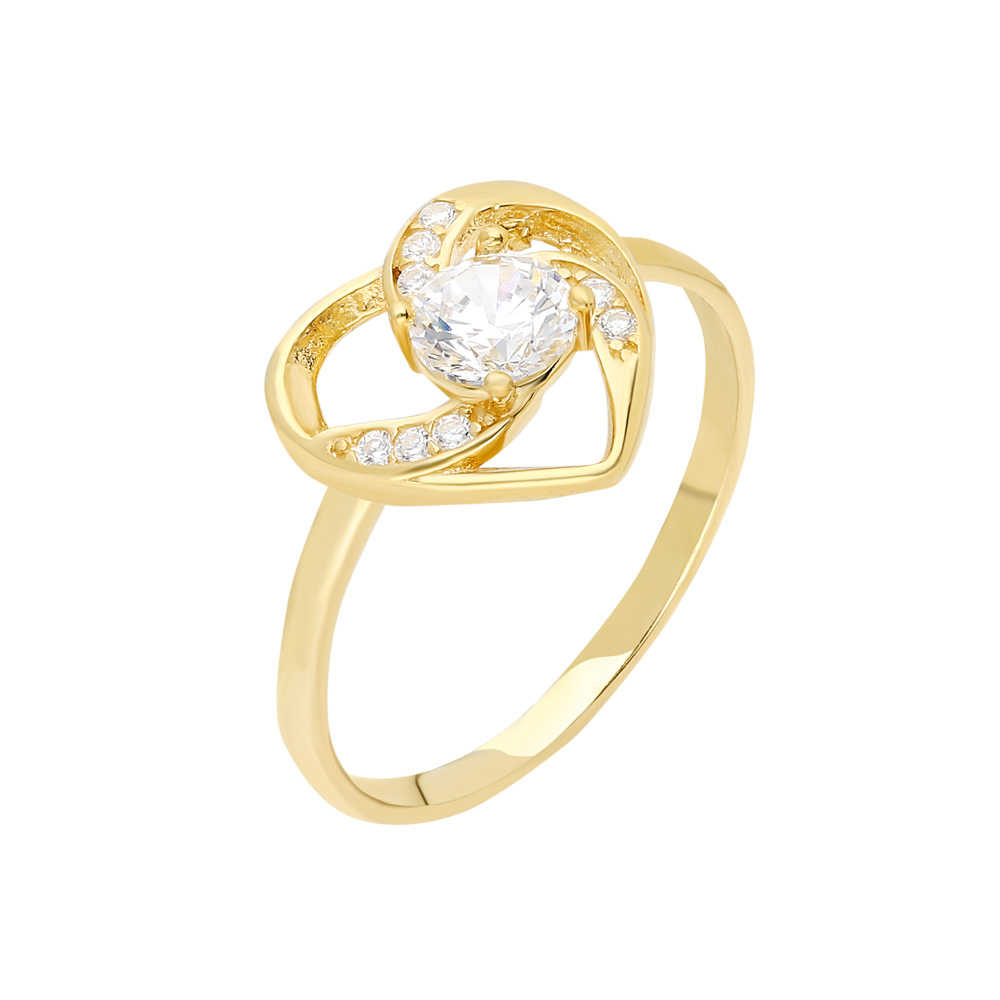 Zirkon Tektaşlı Kalp Tasarım Altın Renk 925 Ayar Gümüş Bayan Yüzük