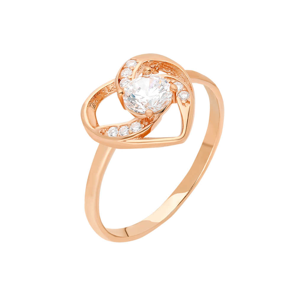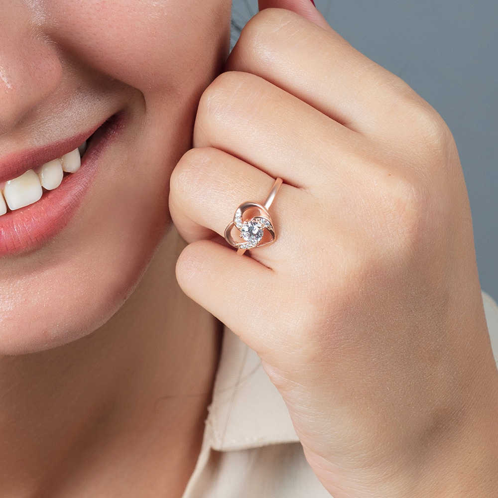 Zirkon Tektaşlı Kalp Tasarım Rose Renk 925 Ayar Gümüş Bayan Yüzük