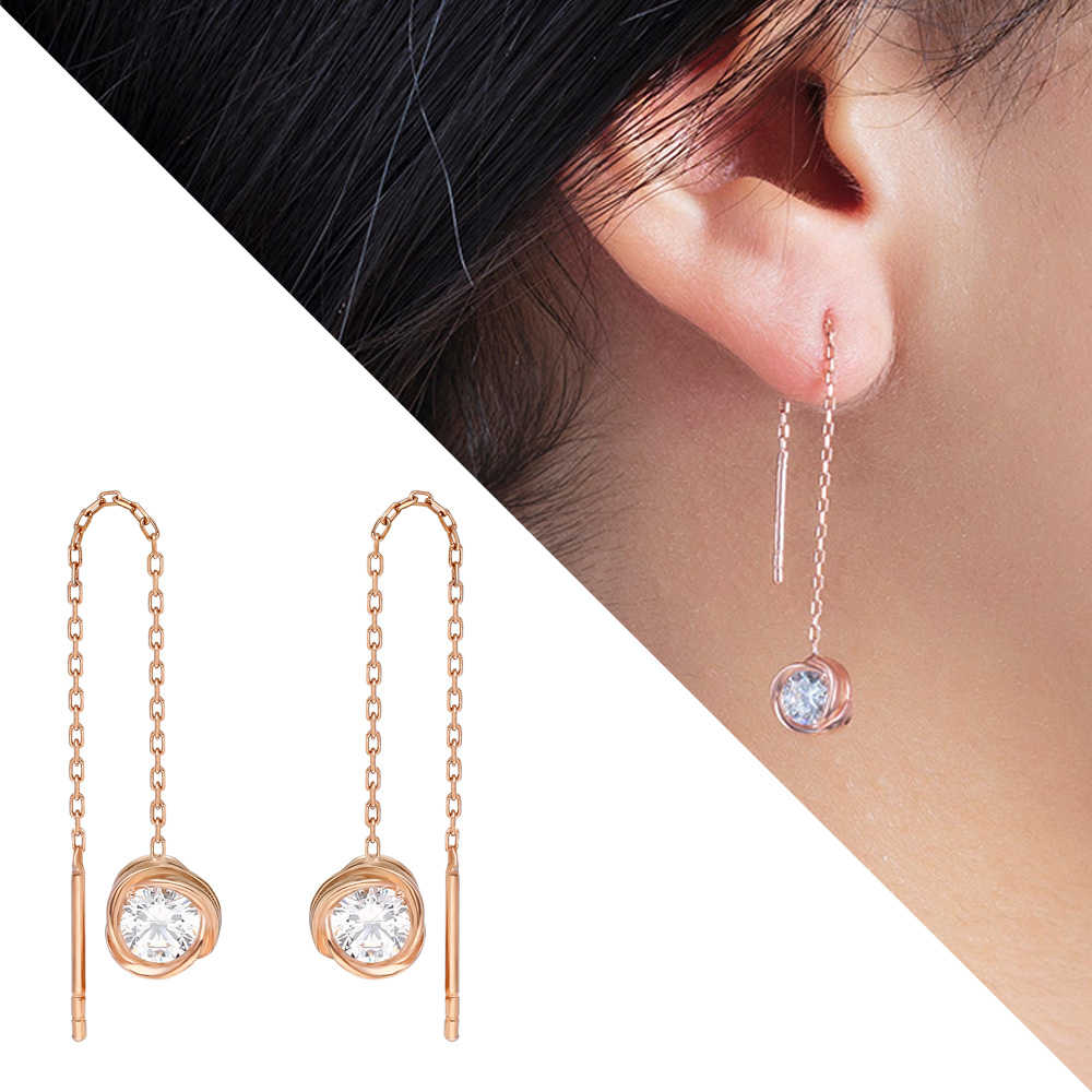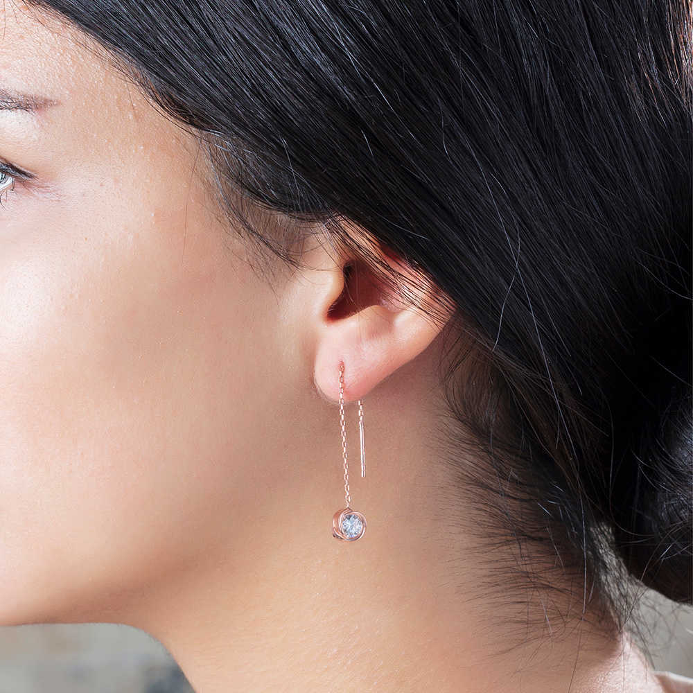 Zirkon Tektaşlı Özel Tasarım Rose Renk 925 Ayar Gümüş Sallantılı Küpe - 1