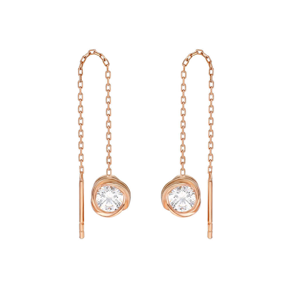Zirkon Tektaşlı Özel Tasarım Rose Renk 925 Ayar Gümüş Sallantılı Küpe