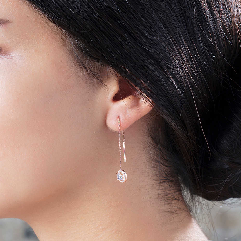 Zirkon Tektaşlı Rose Renk 925 Ayar Gümüş Sallantılı Küpe - 1