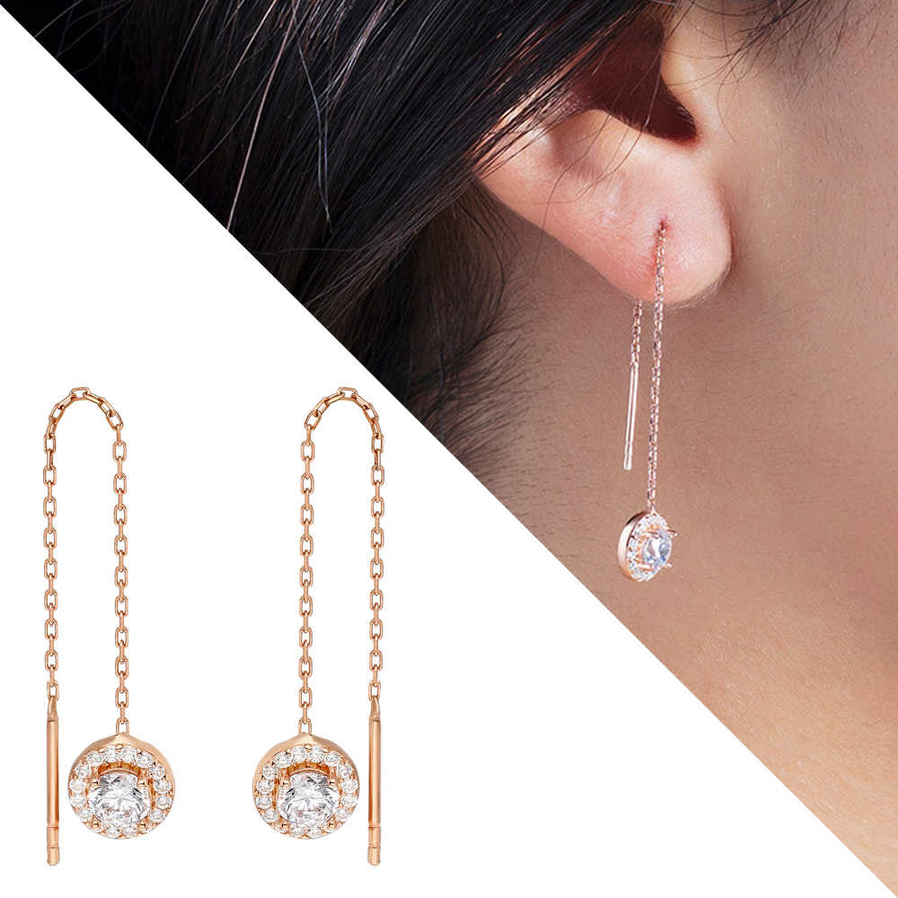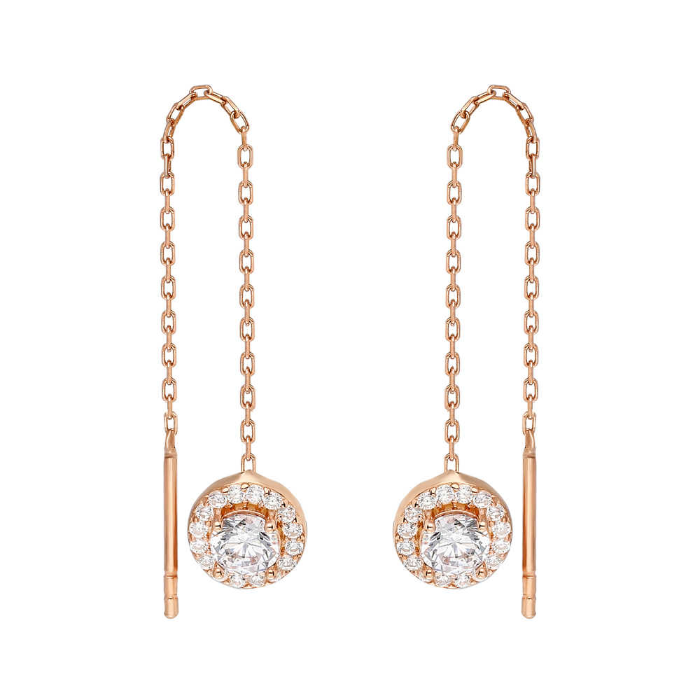 Zirkon Tektaşlı Rose Renk 925 Ayar Gümüş Sallantılı Küpe
