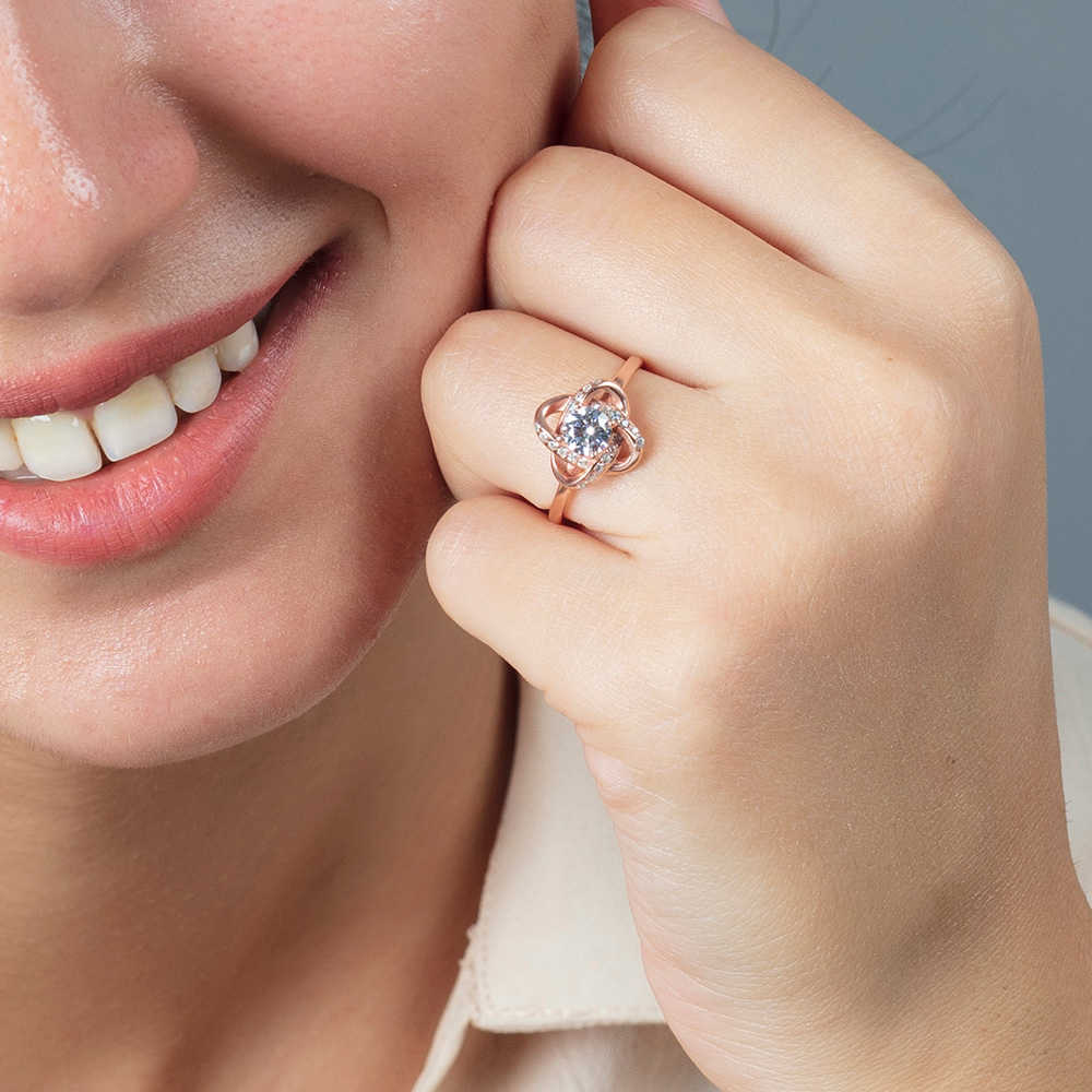 Zirkon Tektaşlı Samanyolu Tasarım Rose Renk 925 Ayar Gümüş Bayan Yüzük