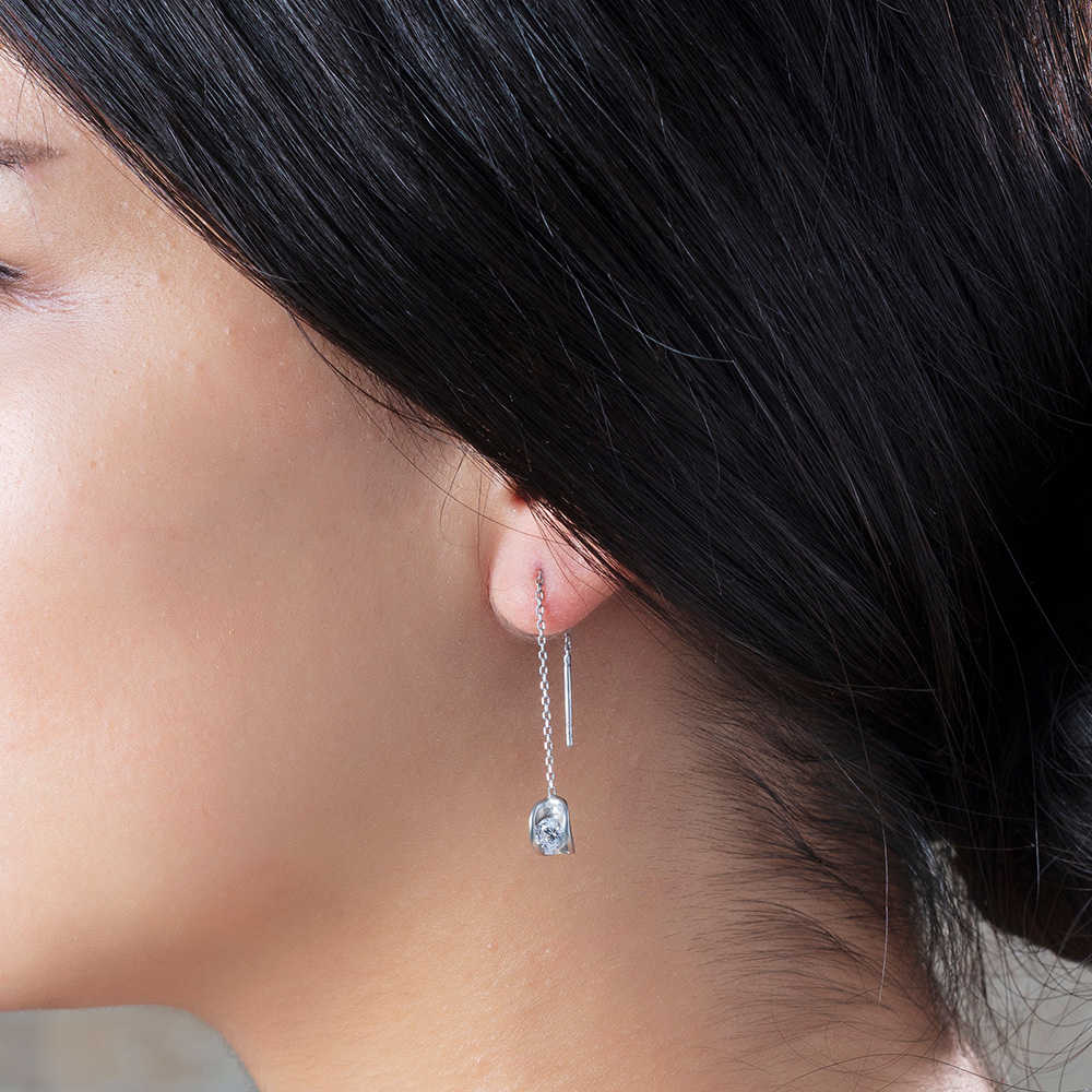 Zirkon Tektaşlı Sandviç Tasarım 925 Ayar Gümüş Sallantılı Küpe - 4