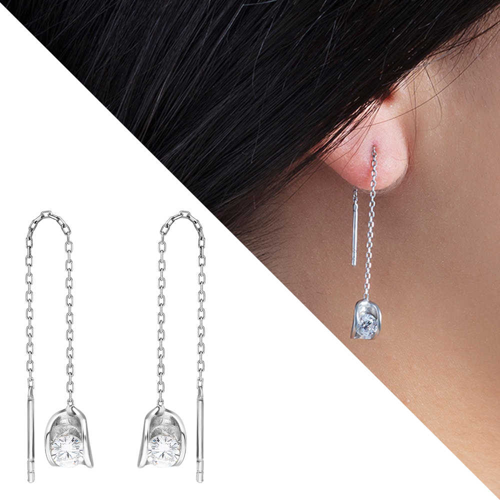 Zirkon Tektaşlı Sandviç Tasarım 925 Ayar Gümüş Sallantılı Küpe - 1