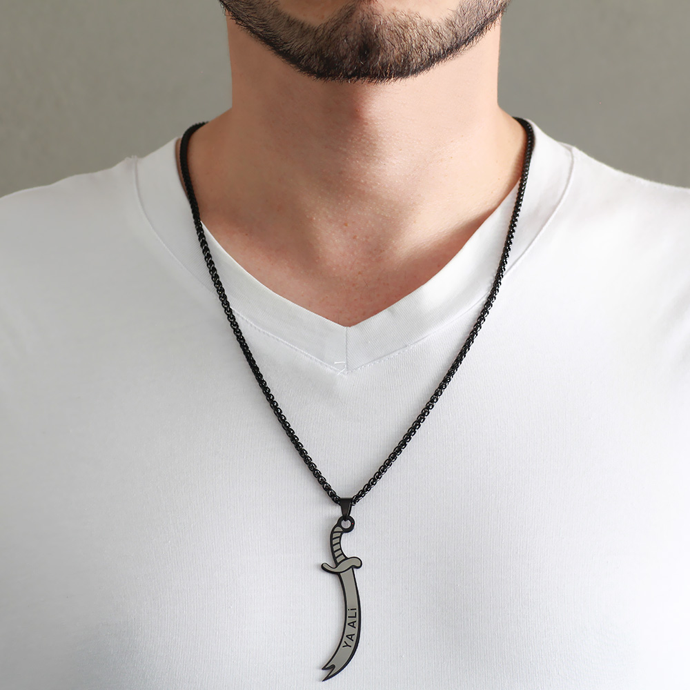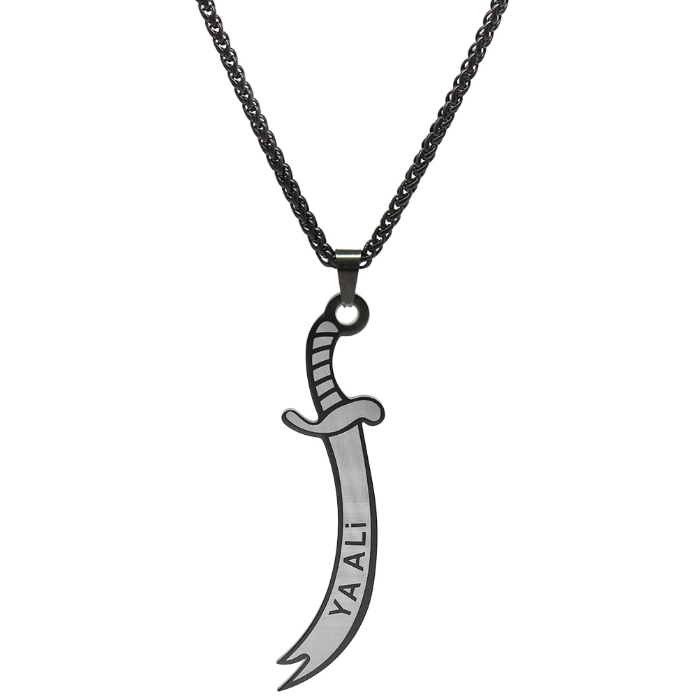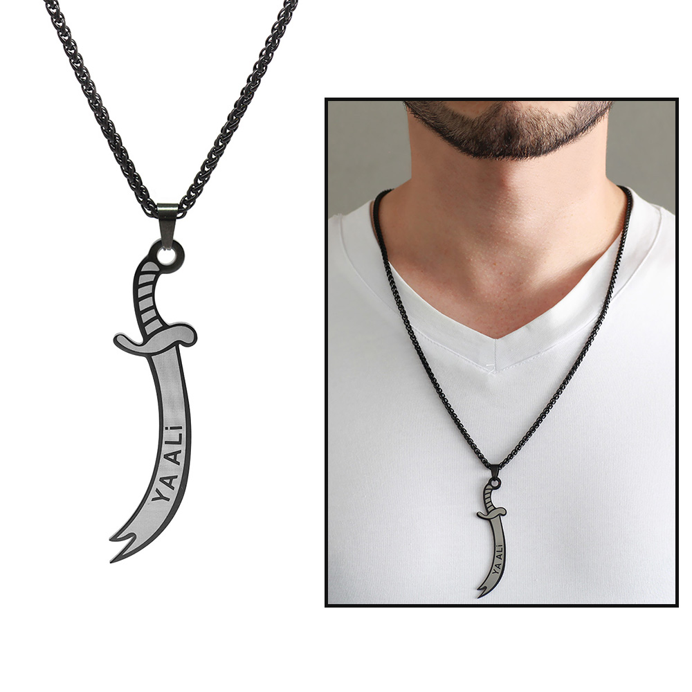 Zülfikar Tasarım Üzeri Ya Alii Yazılı Siyah Renk Çelik Erkek Kolye