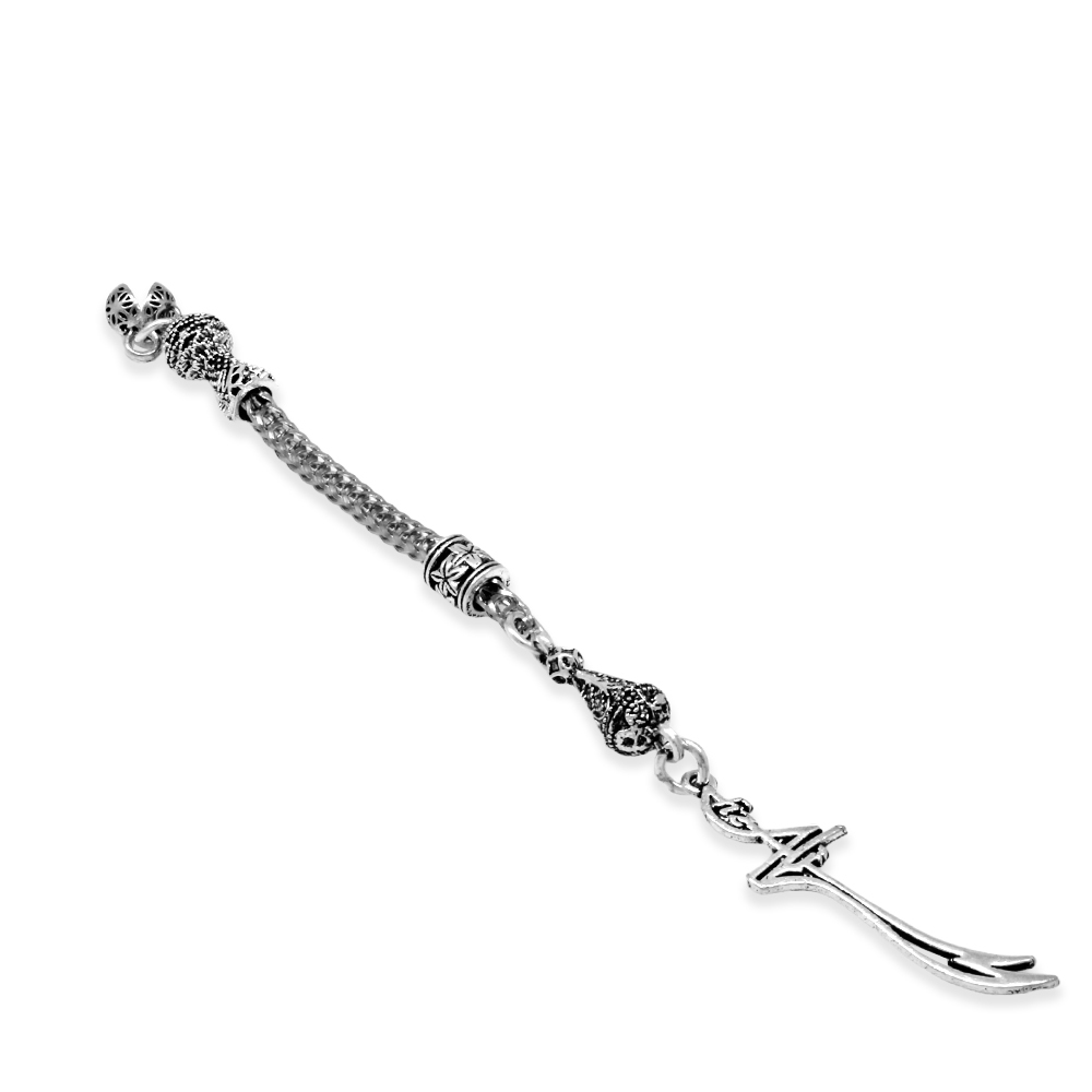 Zülfikar Temalı Foxtail Zincirli Tek Kamçılı Kararmaz Metal Püskül