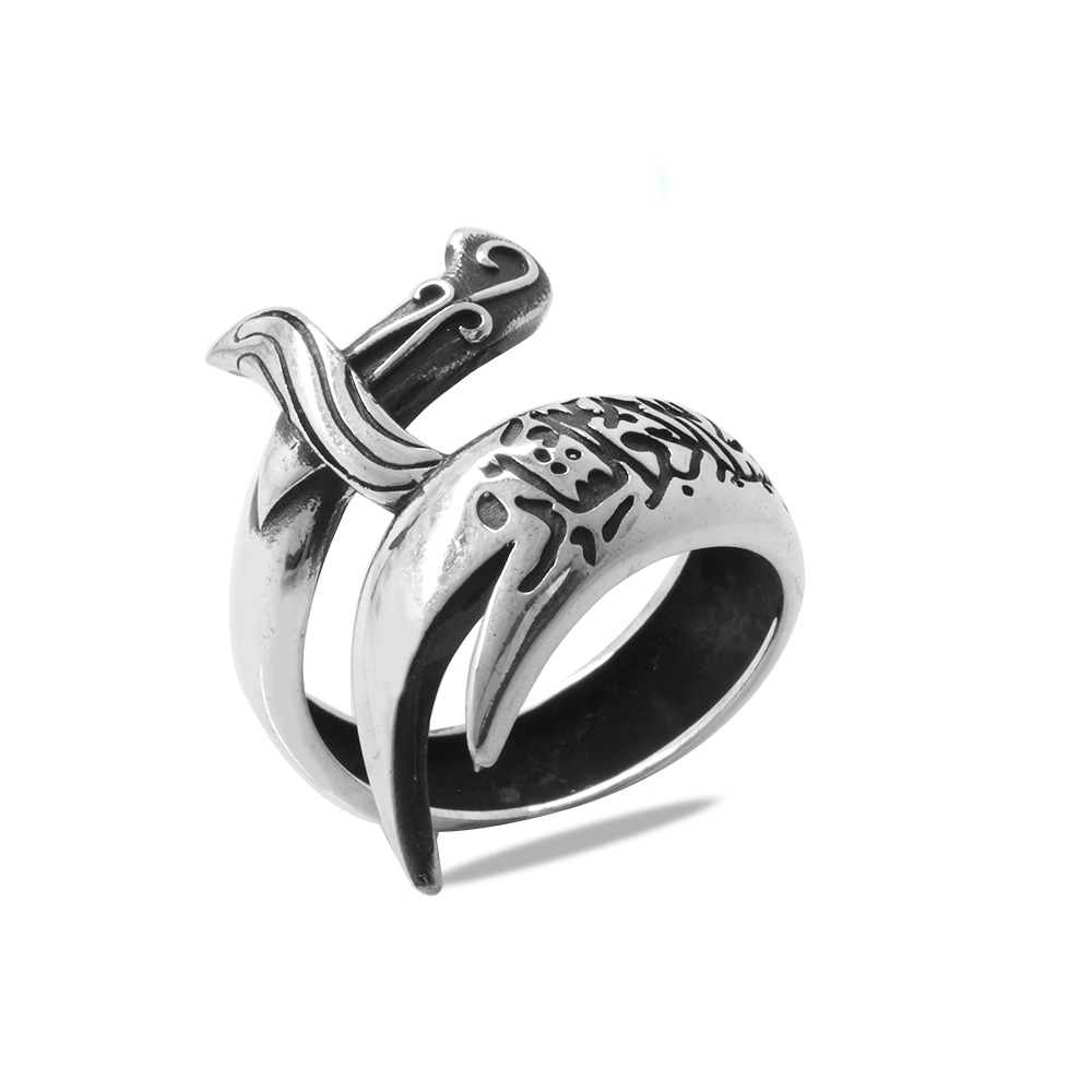 Zülfikardan Keskin Kılıç Hz Aliden Başka Yiğit Yoktur Yazılı 925 Ayar Gümüş Erkek Zülfikar Yüzük