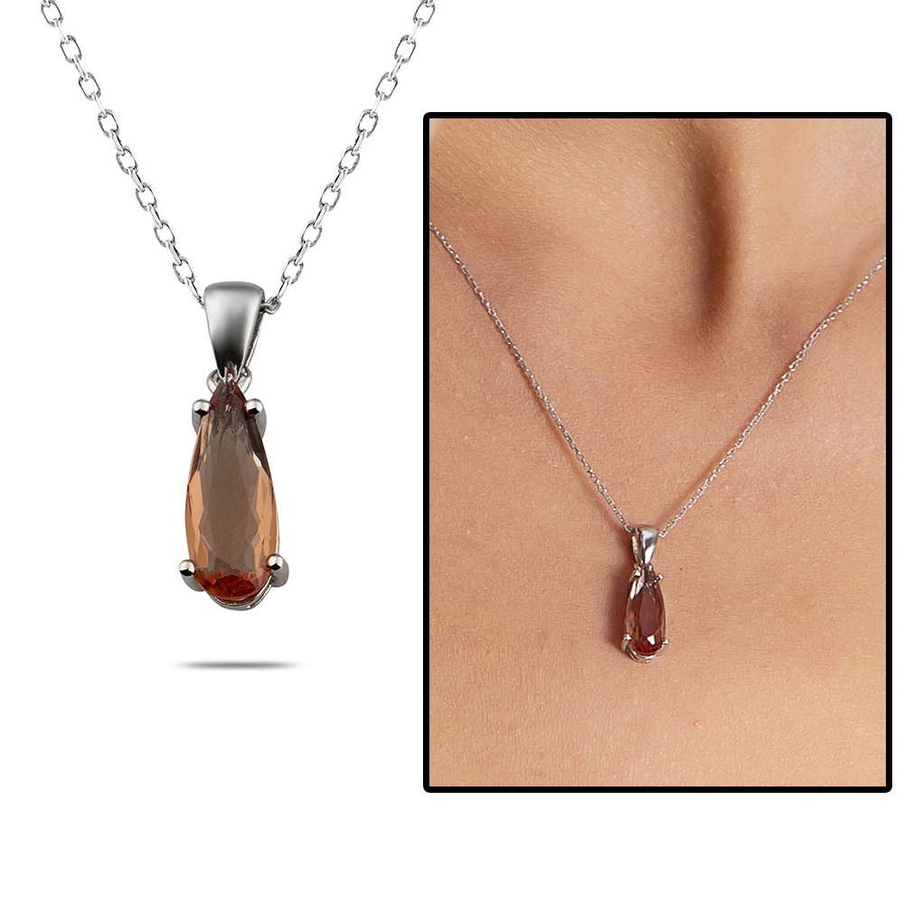 Zultanit Taşlı Damla Tasarım Zarif 925 Ayar Gümüş Kadın Kolye