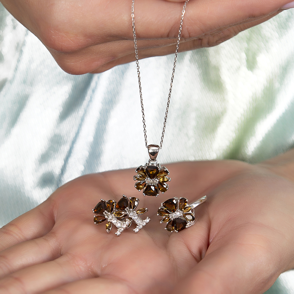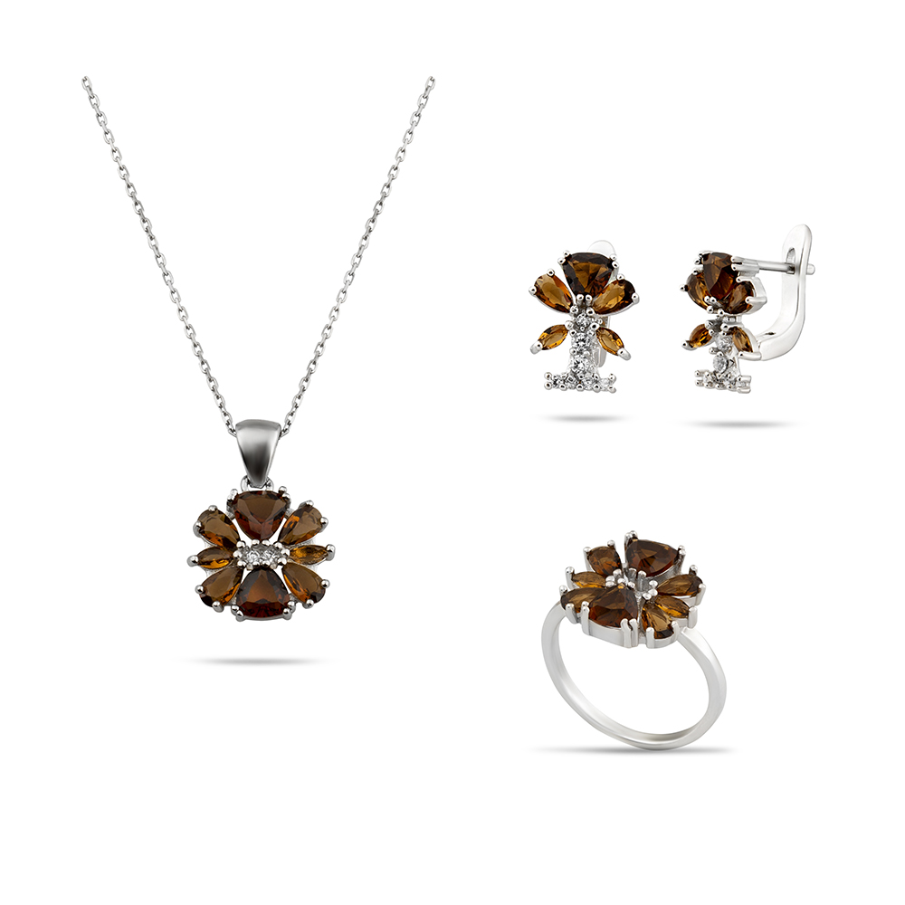 Zultanit Taşlı Kır Çiçeği Tasarım 925 Ayar Gümüş 3 lü Takı Seti