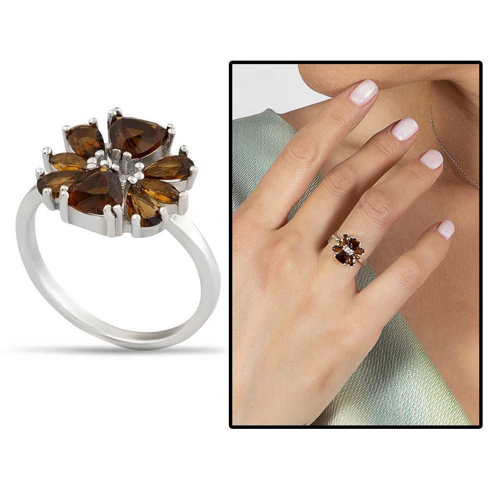 Zultanit Taşlı Kır Çiçeği Tasarım 925 Ayar Gümüş Kadın Yüzük