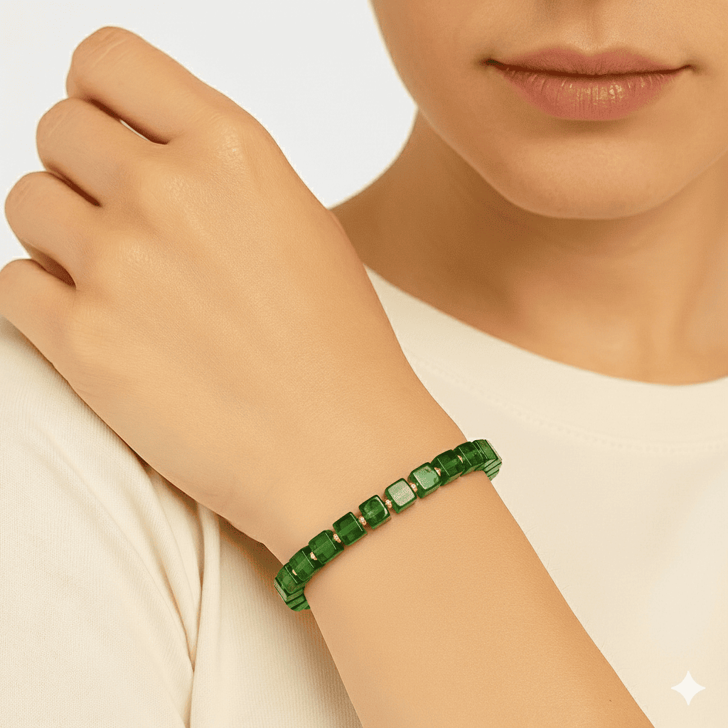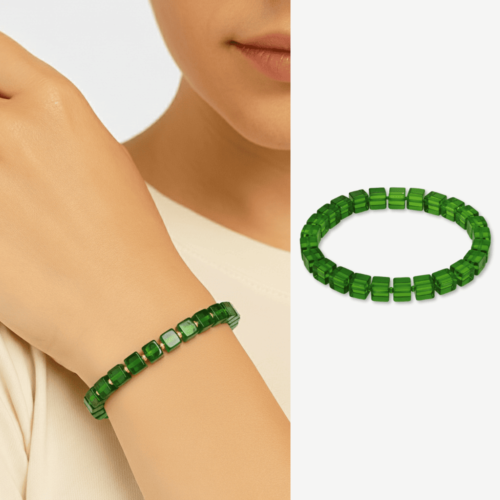 Zümrüt Yeşili Küp Kesim Doğal Damla Kehribar Kadın Bileklik