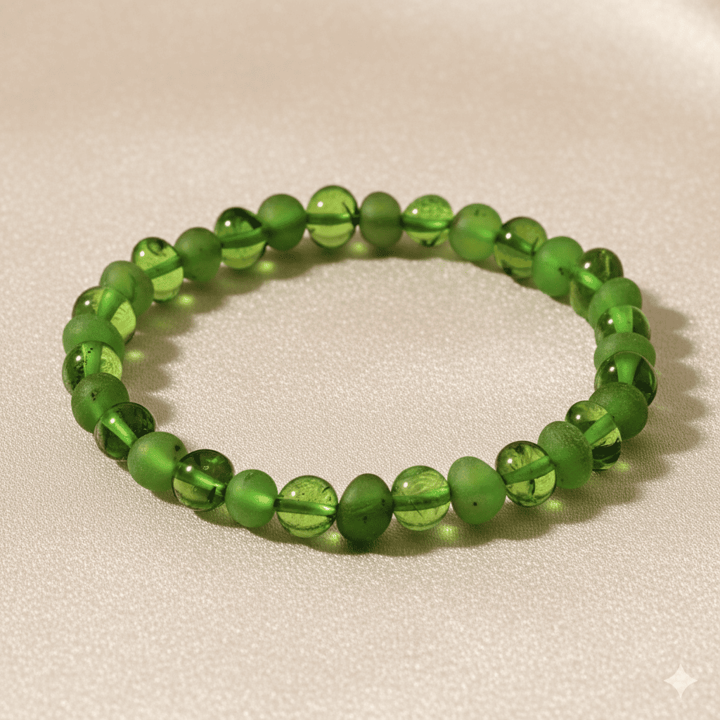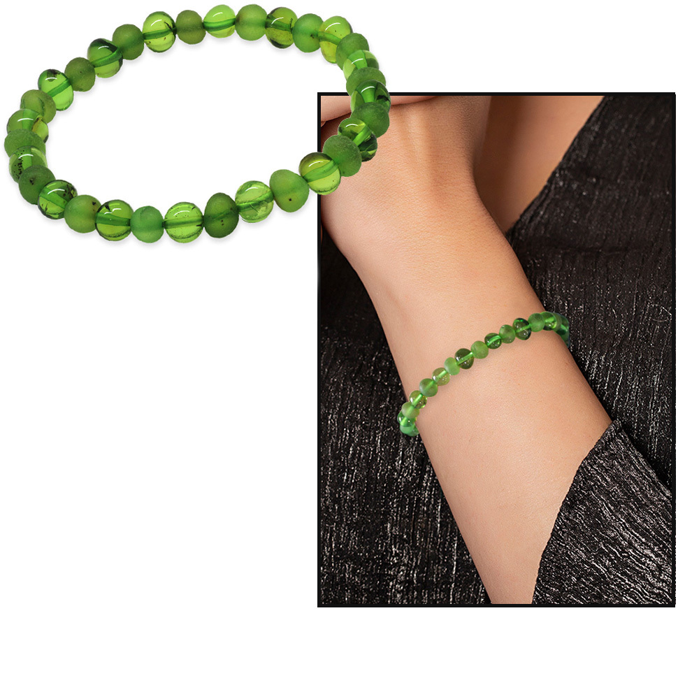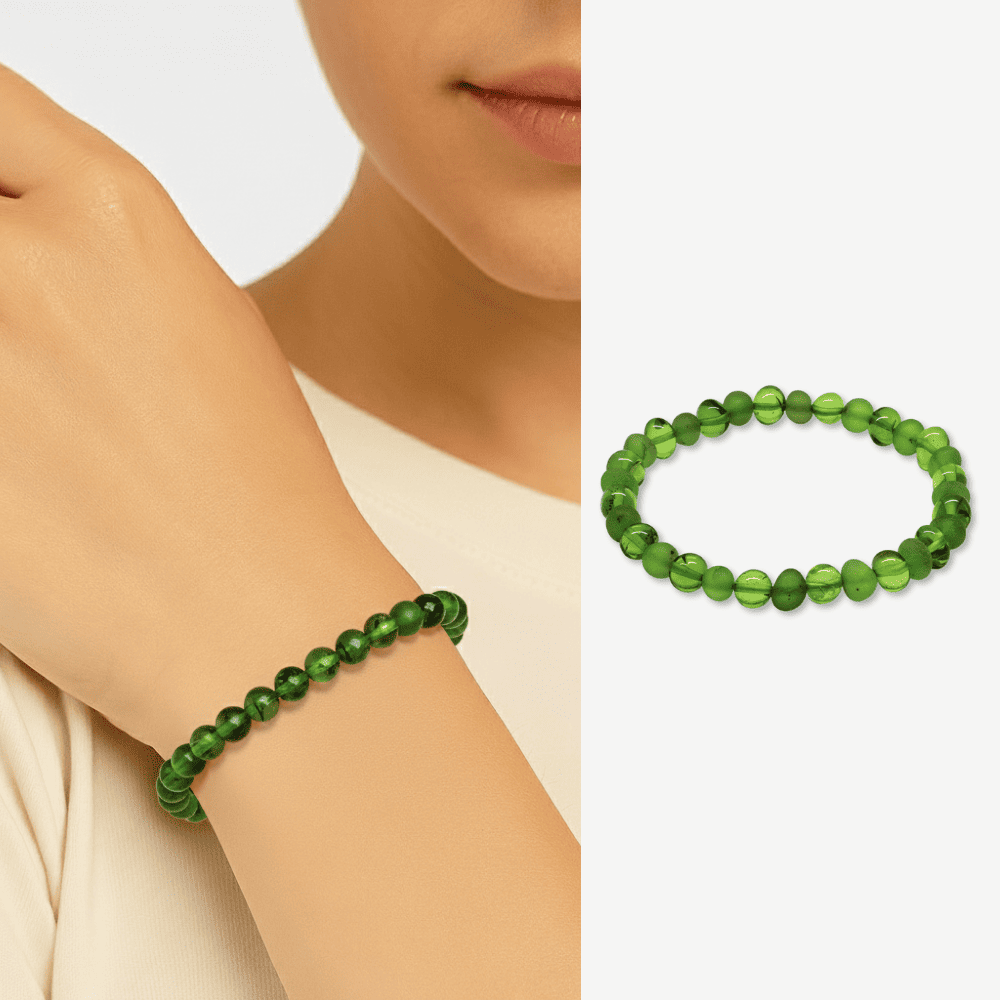 Zümrüt Yeşili Tekerlek Kesim Doğal Damla Kehribar Kadın Bileklik